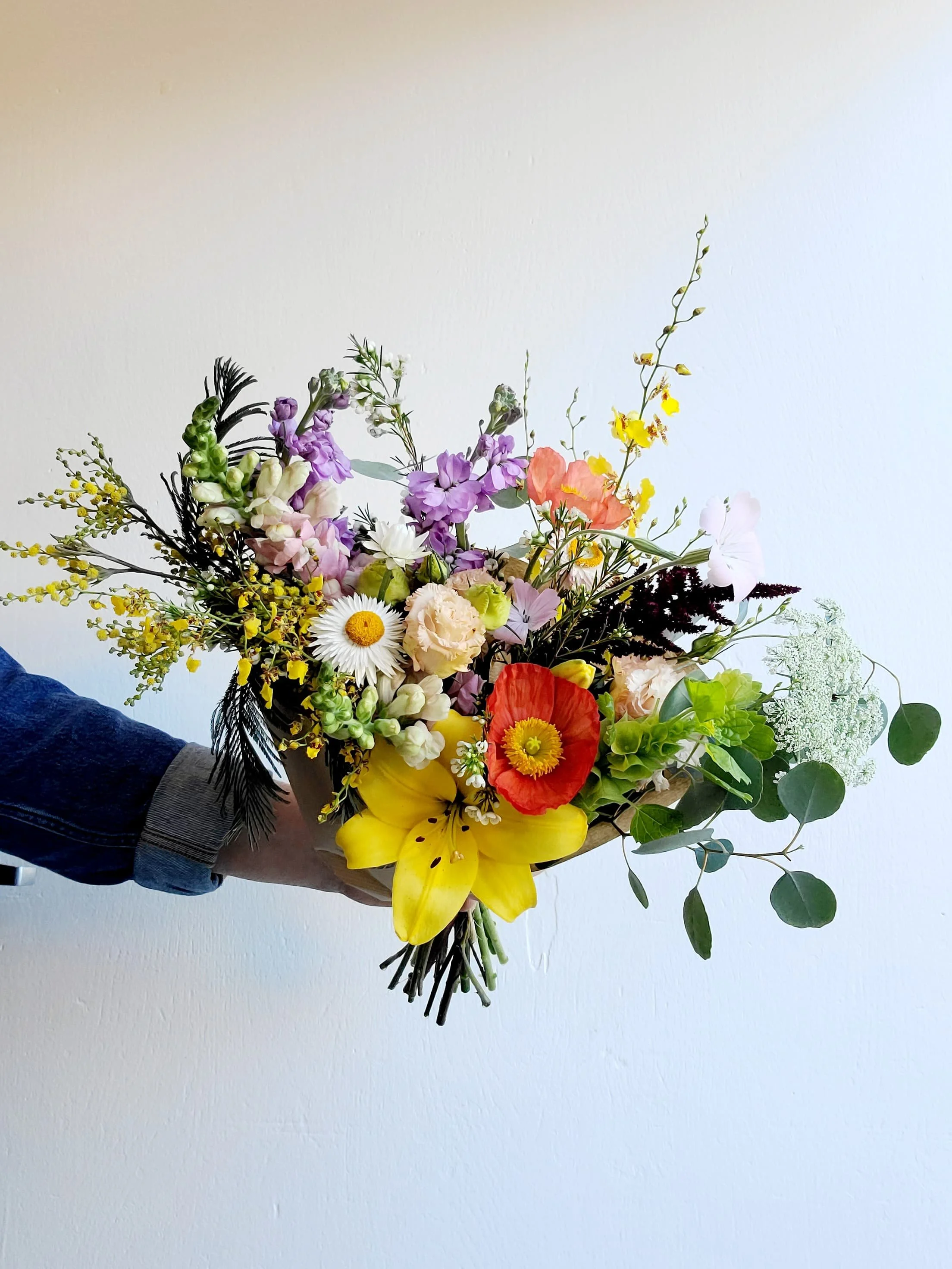 Featuring locally grown poppies, snapdragons, lilies, sweetpeas, agrostemma and other beauties